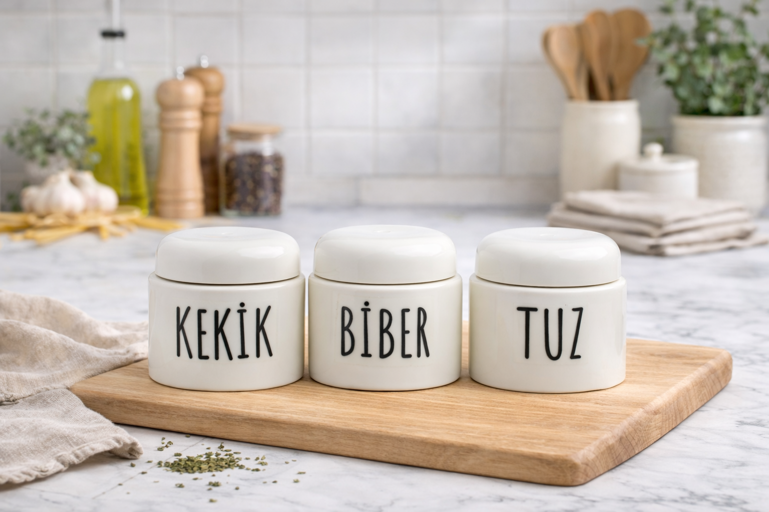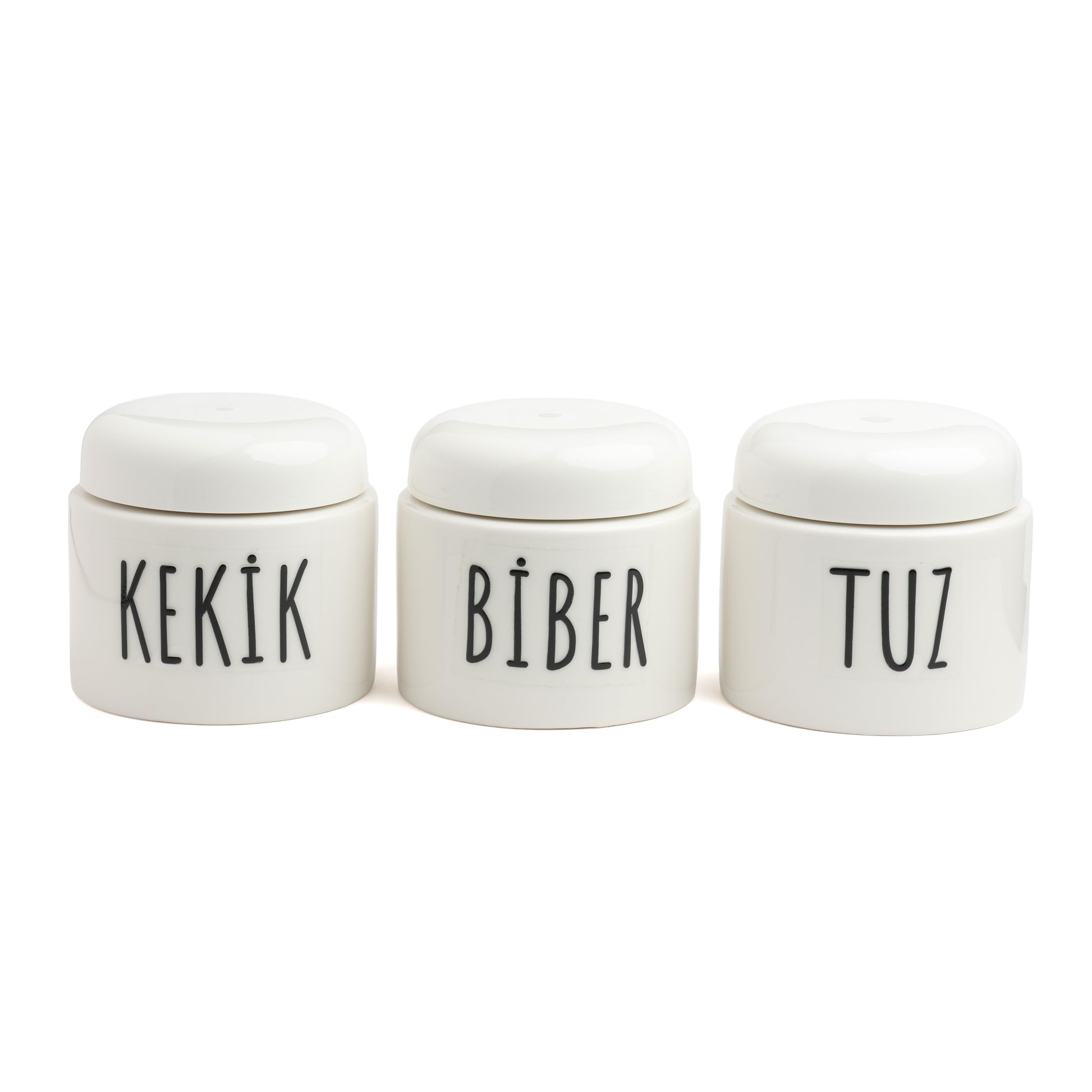 3’lü Seramik Baharatlık Seti – Kapaklı Etiket Hediyeli